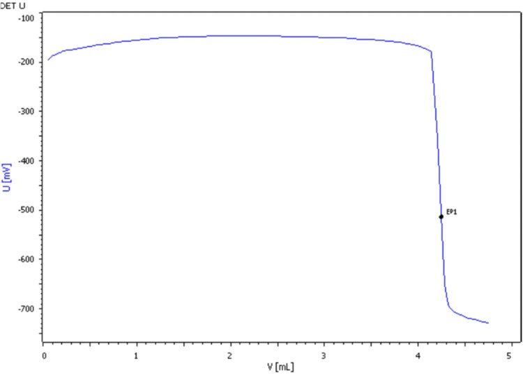 Según EN ISO 8467, un estándar de resorcinol de 6 mg/L tiene un PMI entre 9,32 y 10,28 mg/L. El análisis demuestra aceptable y reproducible resultados para el patrón y la muestra, que se resumen en tabla 1. Un ejemplo de curva de titulación se muestra en Figura 2.
