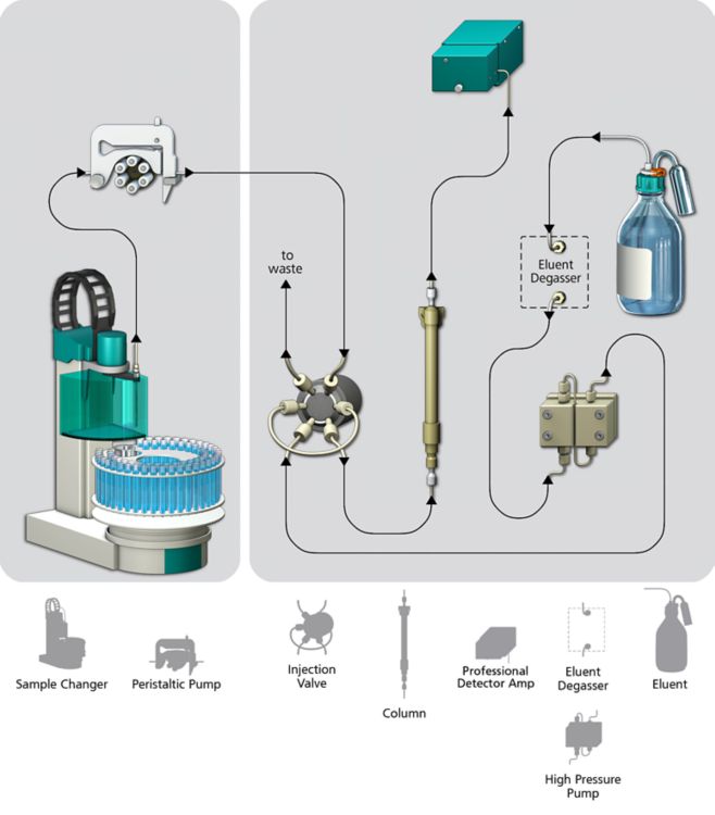 The Professional IC Vario system with amperometric detection enables fully automatic determination of sugar, oxidizable anions and additional oxidizable and reducible components.
